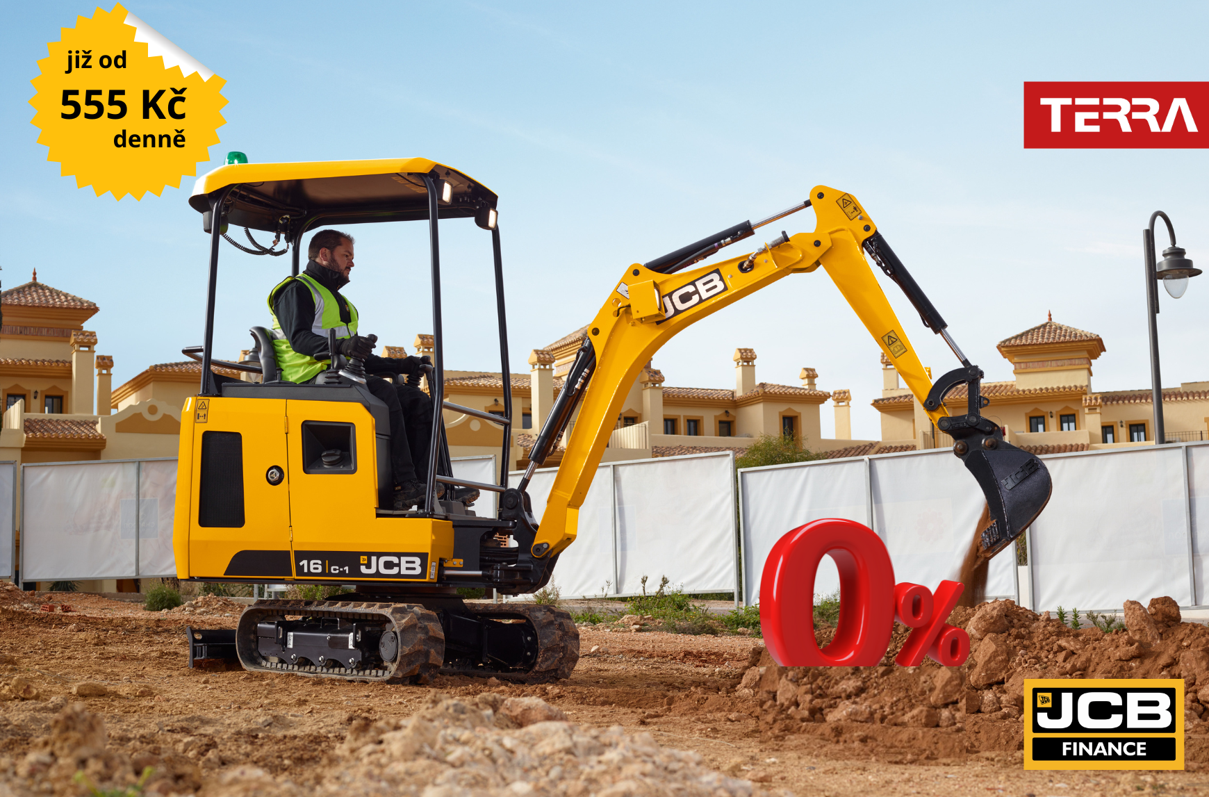 Nabízíme univerzální minirýpadlo JCB 16C-1 za sváteční cenu, a již od 555 Kč / den!