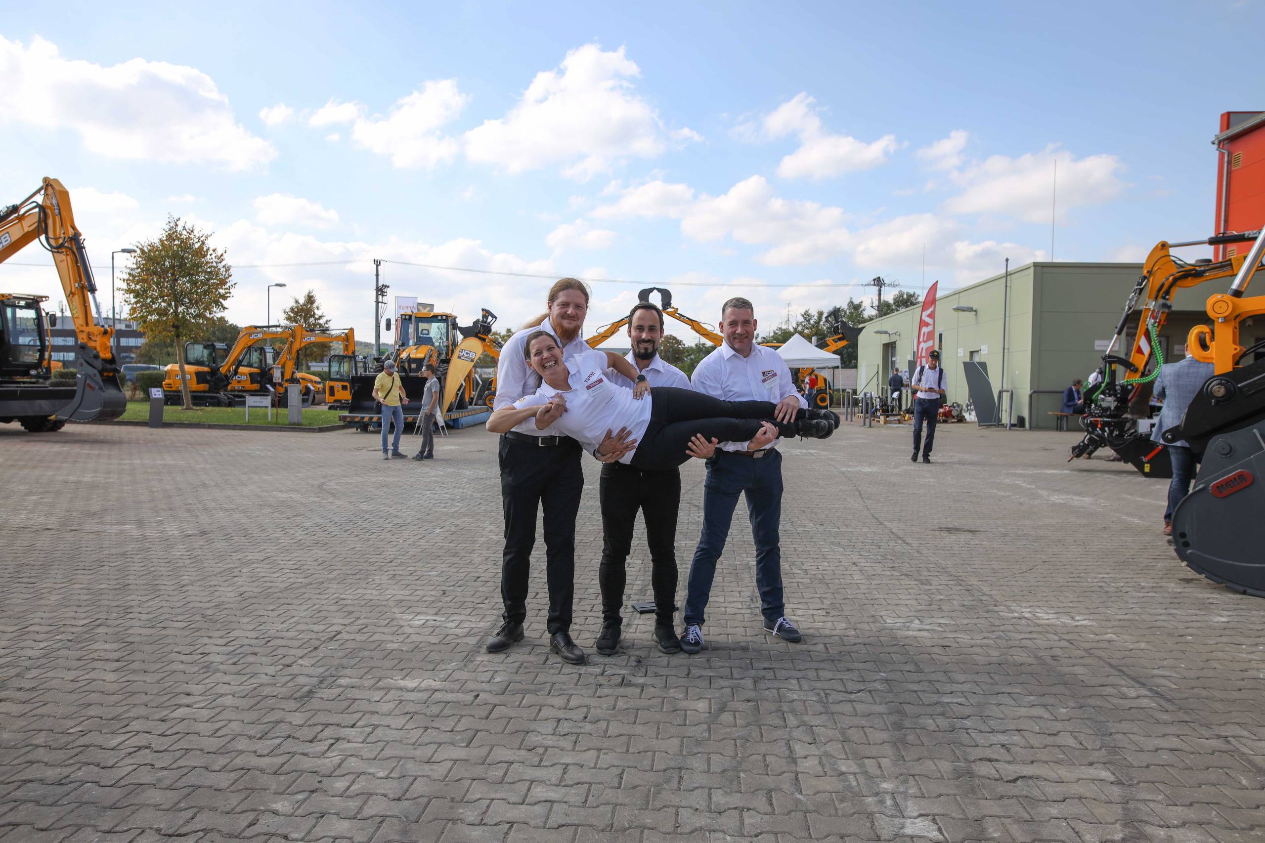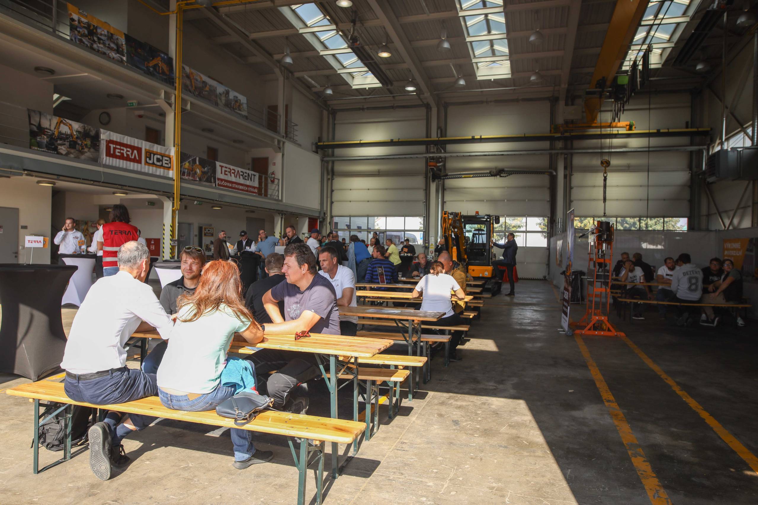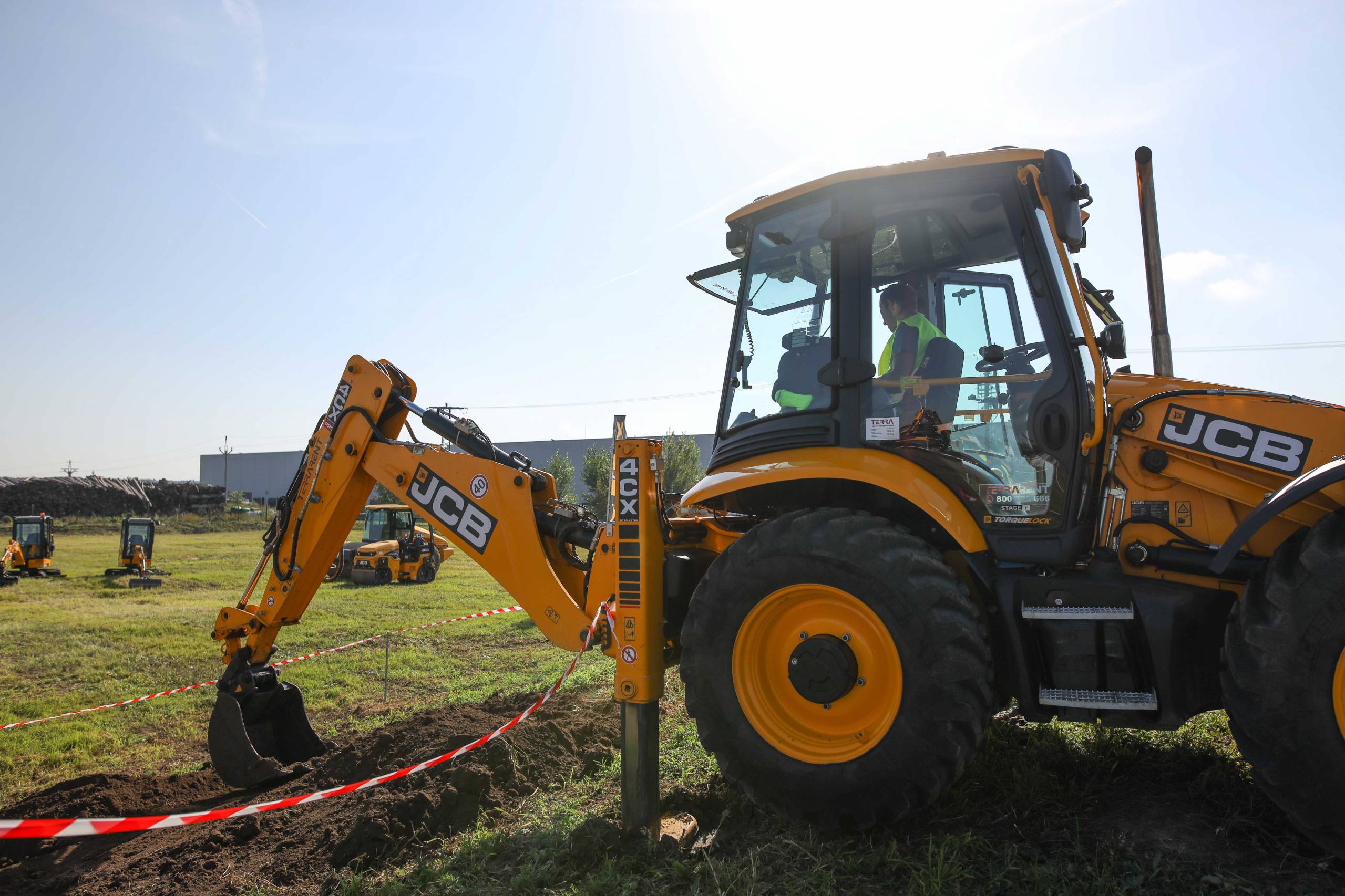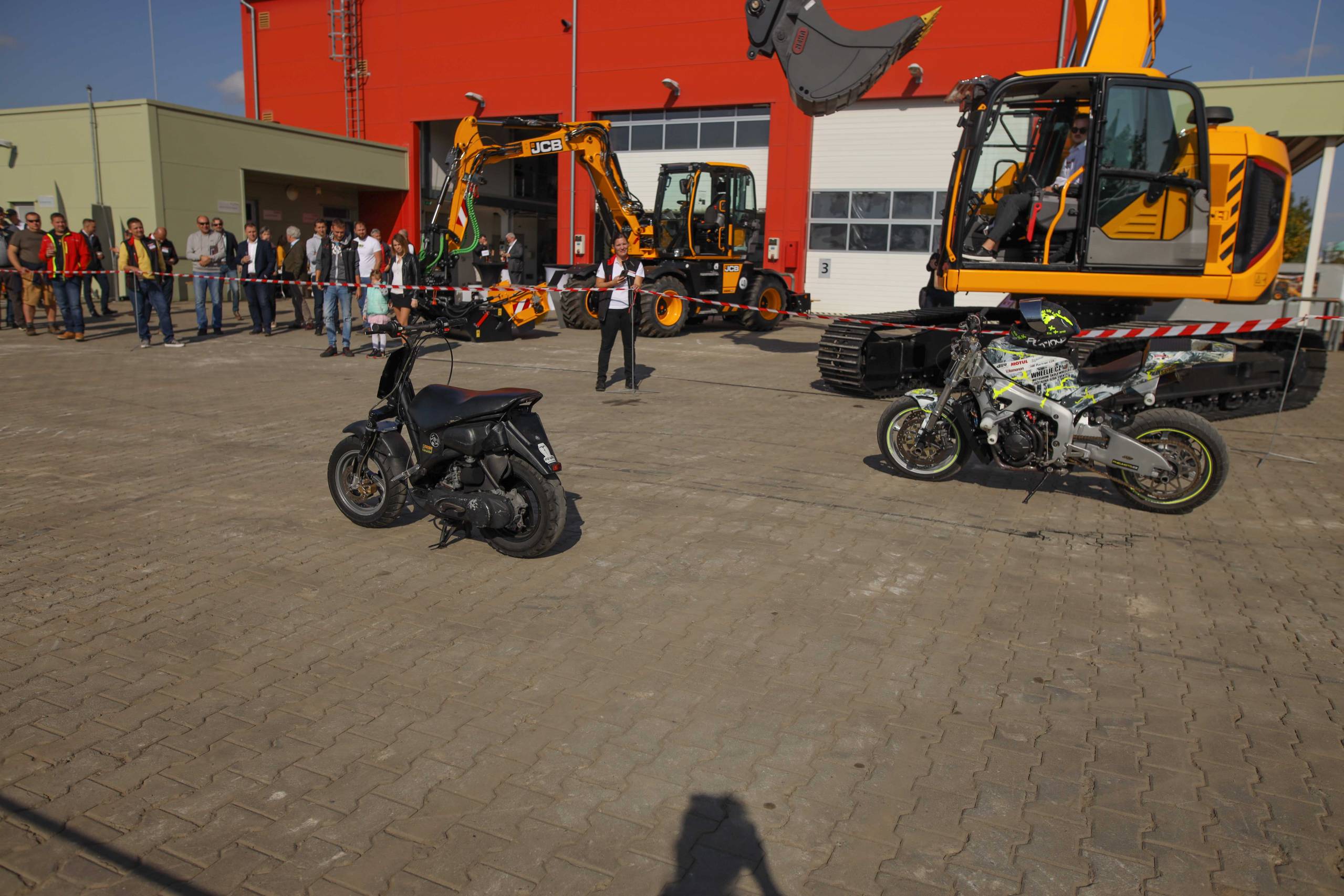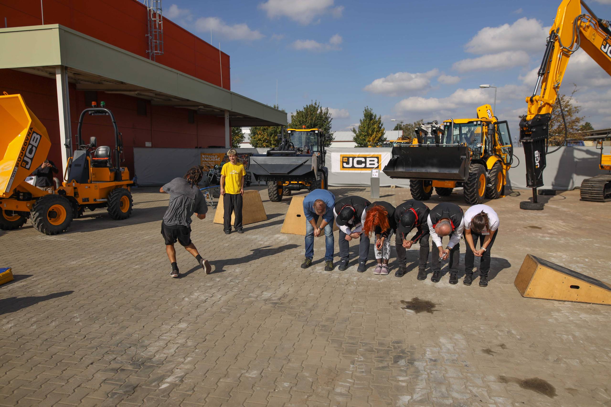 Na odstavné ploše byly zastoupeny téměř všechny naše stroje od MINI/MIDI, přes trakorbagry až po 24 tunová pásová rýpadla. Dále byly představeny naše hlavní JCB novinky unikátní Hydradig Pothole Pro určený k opravě výtluků, pásové rýpadlo JCB 245XR se zkrácenou zádí, rotační teleskopický manipulátor JCB 555-210R doplněný o plošinu na které bylo možné užít si výhled na celý areál z výšky až 21 metrů.