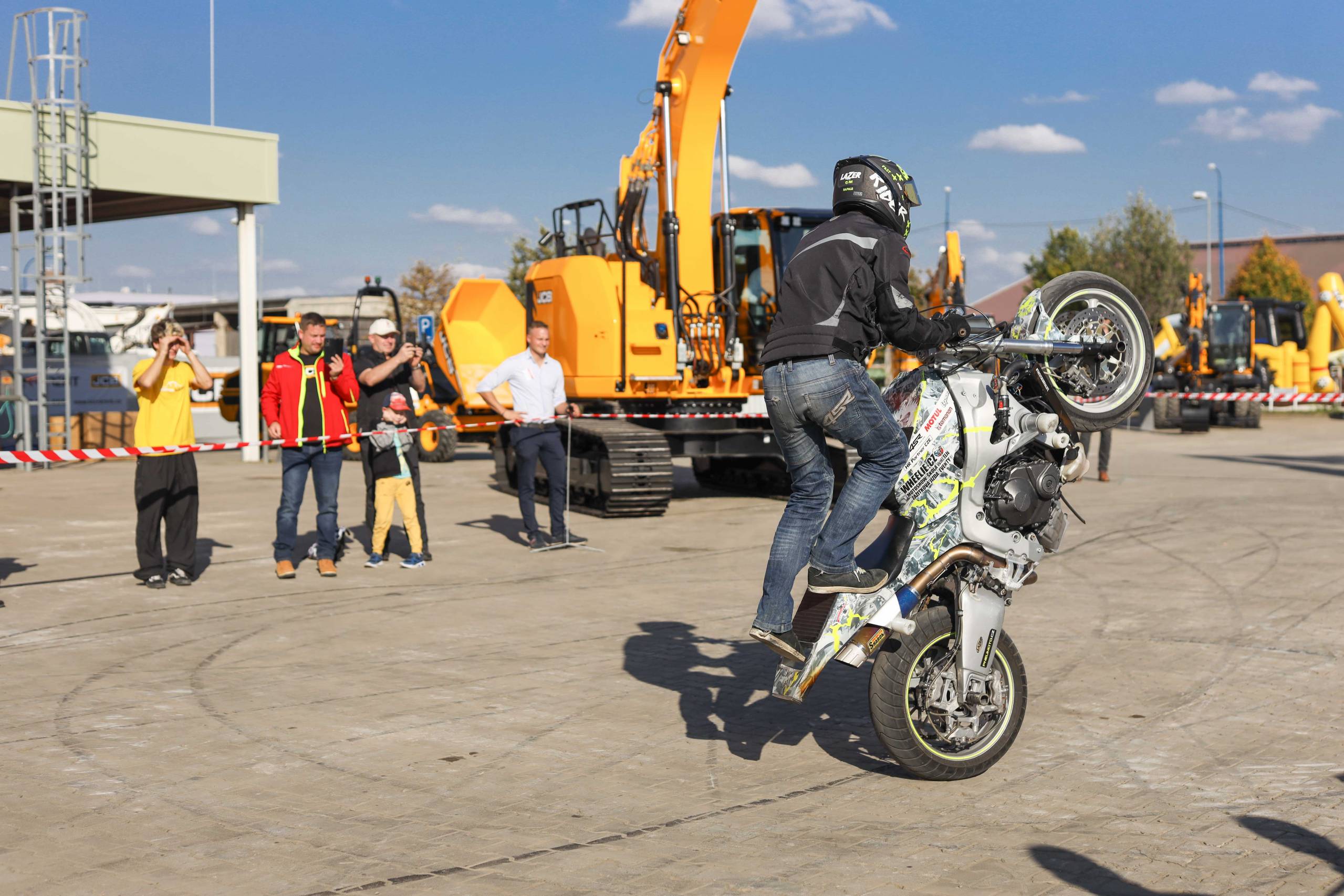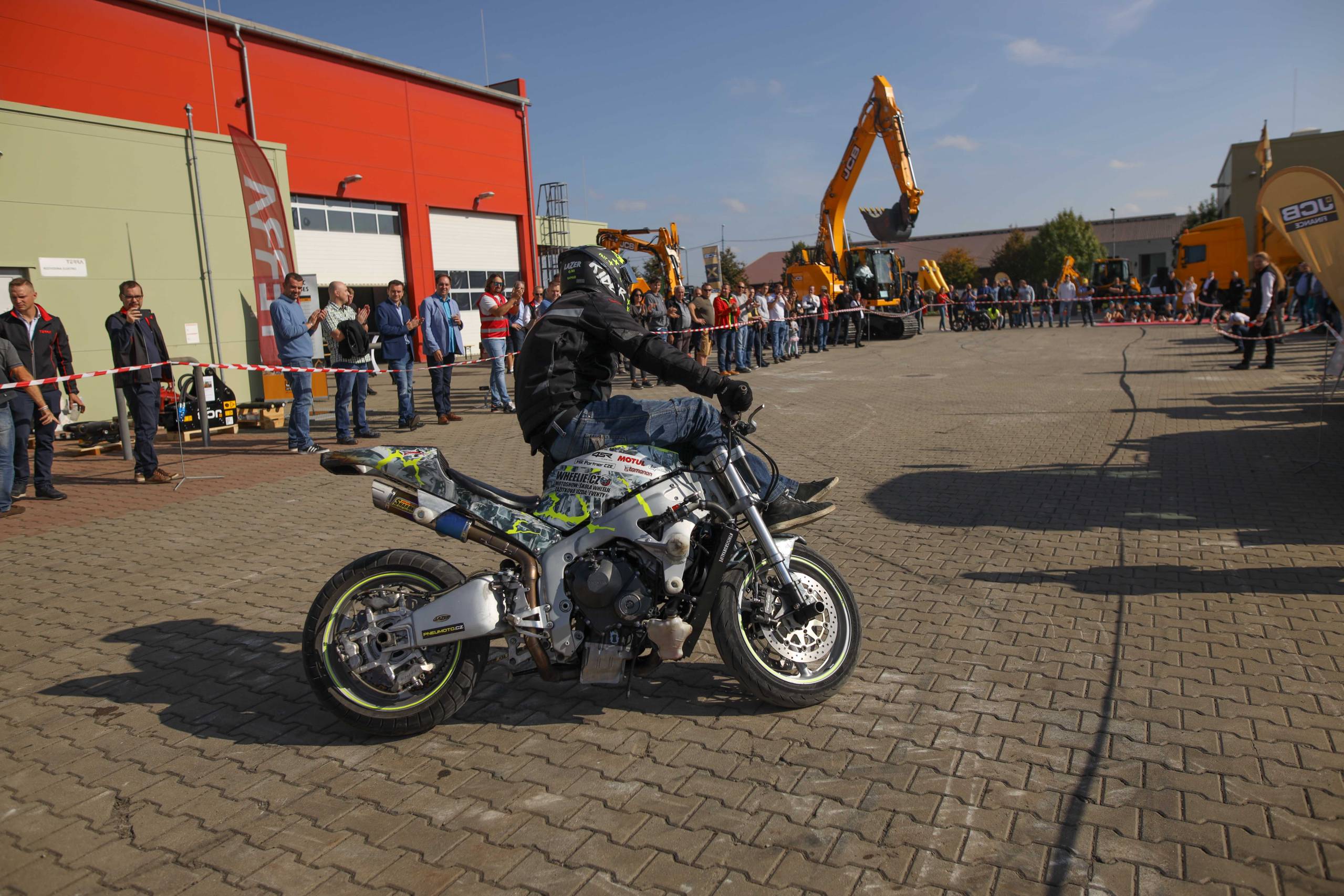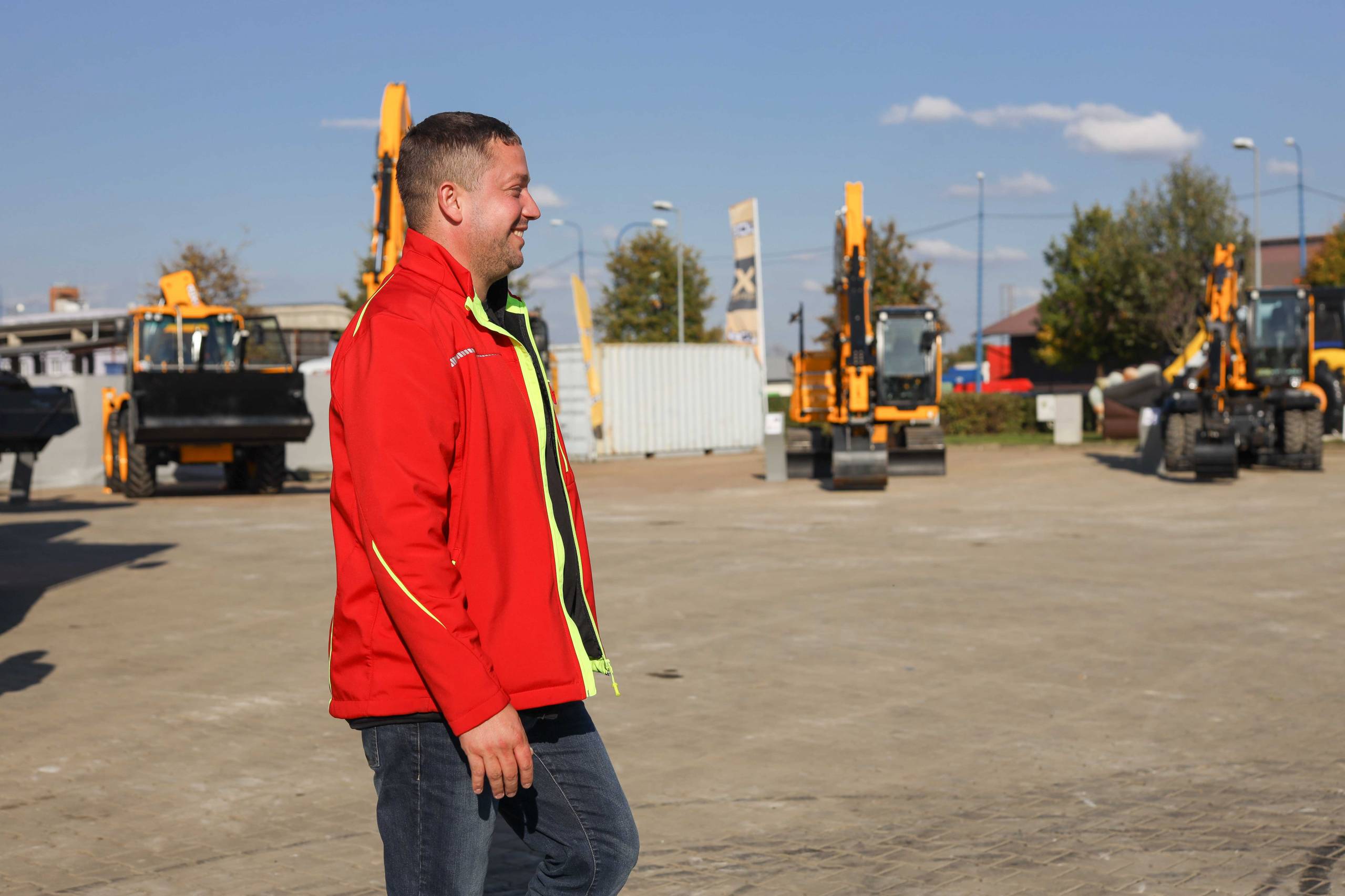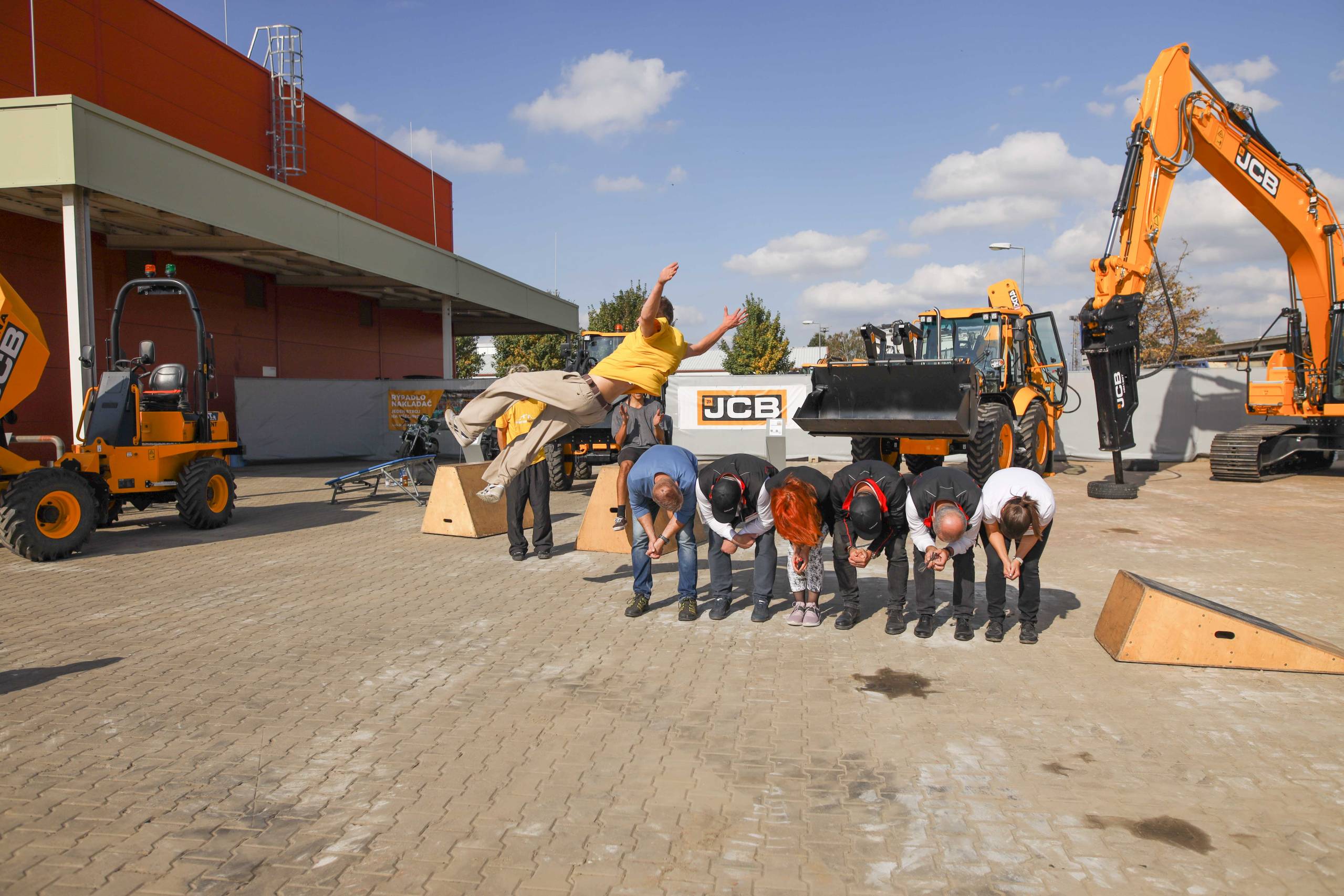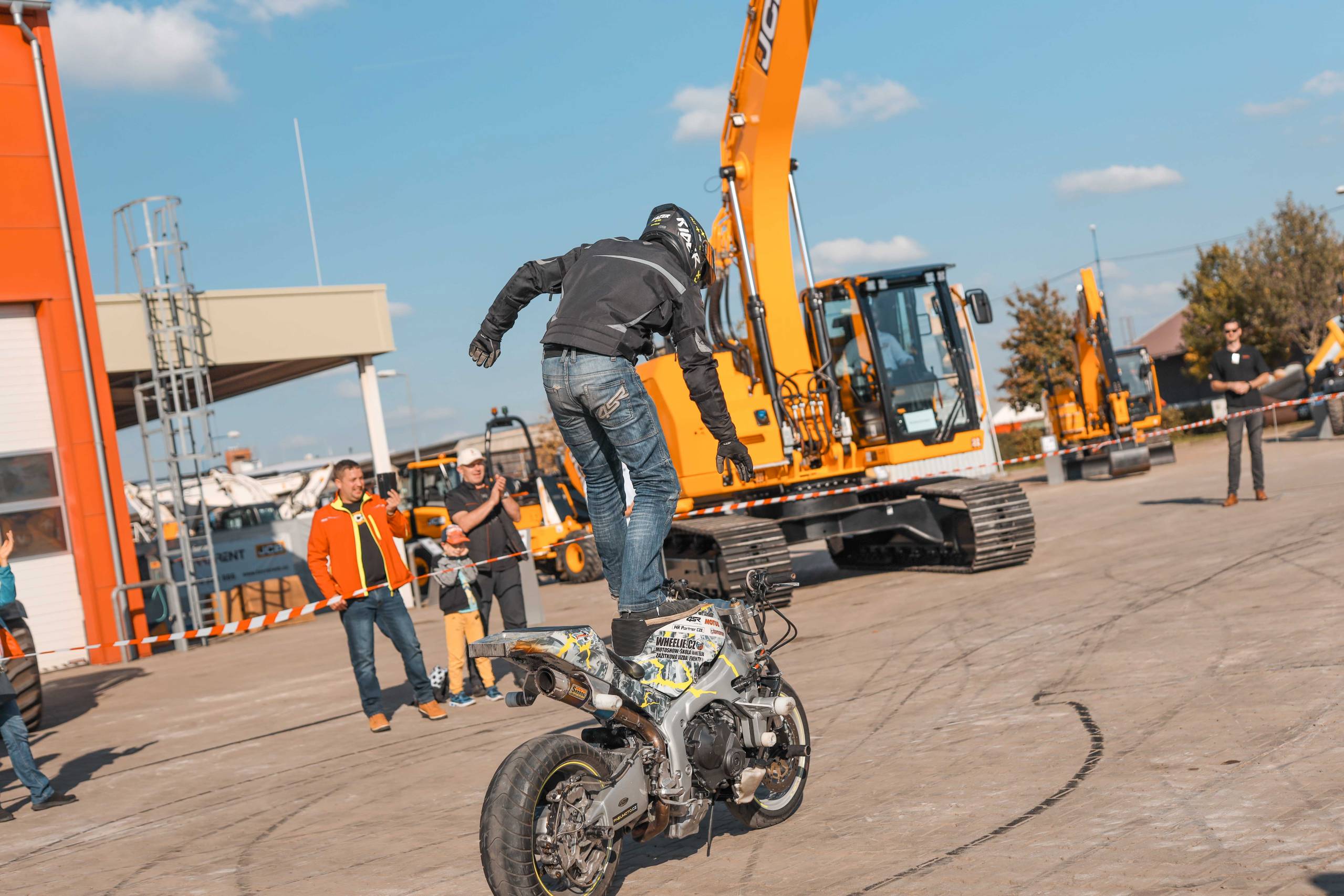 Na odstavné ploše byly zastoupeny téměř všechny naše stroje od MINI/MIDI, přes trakorbagry až po 24 tunová pásová rýpadla. Dále byly představeny naše hlavní JCB novinky unikátní Hydradig Pothole Pro určený k opravě výtluků, pásové rýpadlo JCB 245XR se zkrácenou zádí, rotační teleskopický manipulátor JCB 555-210R doplněný o plošinu na které bylo možné užít si výhled na celý areál z výšky až 21 metrů.