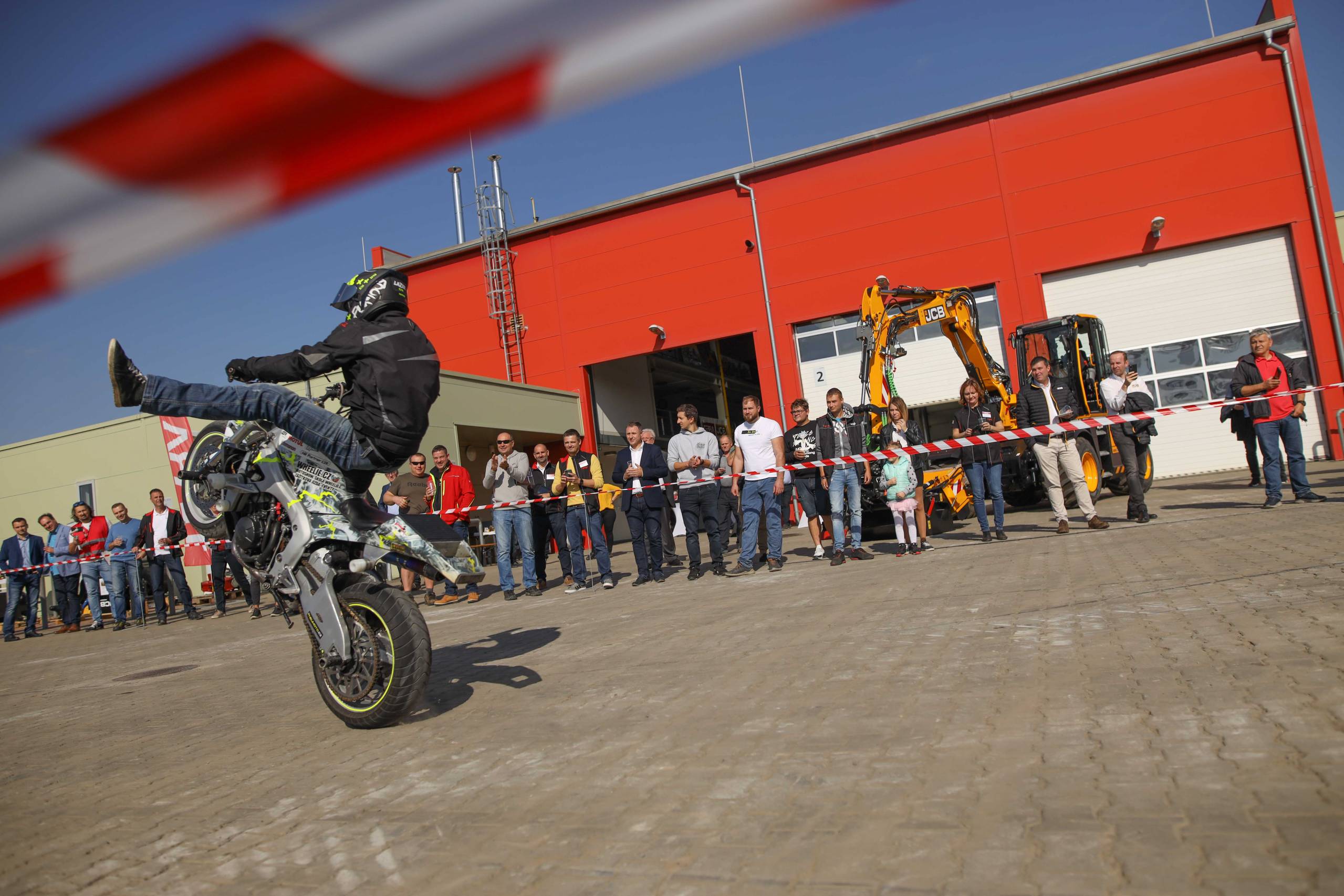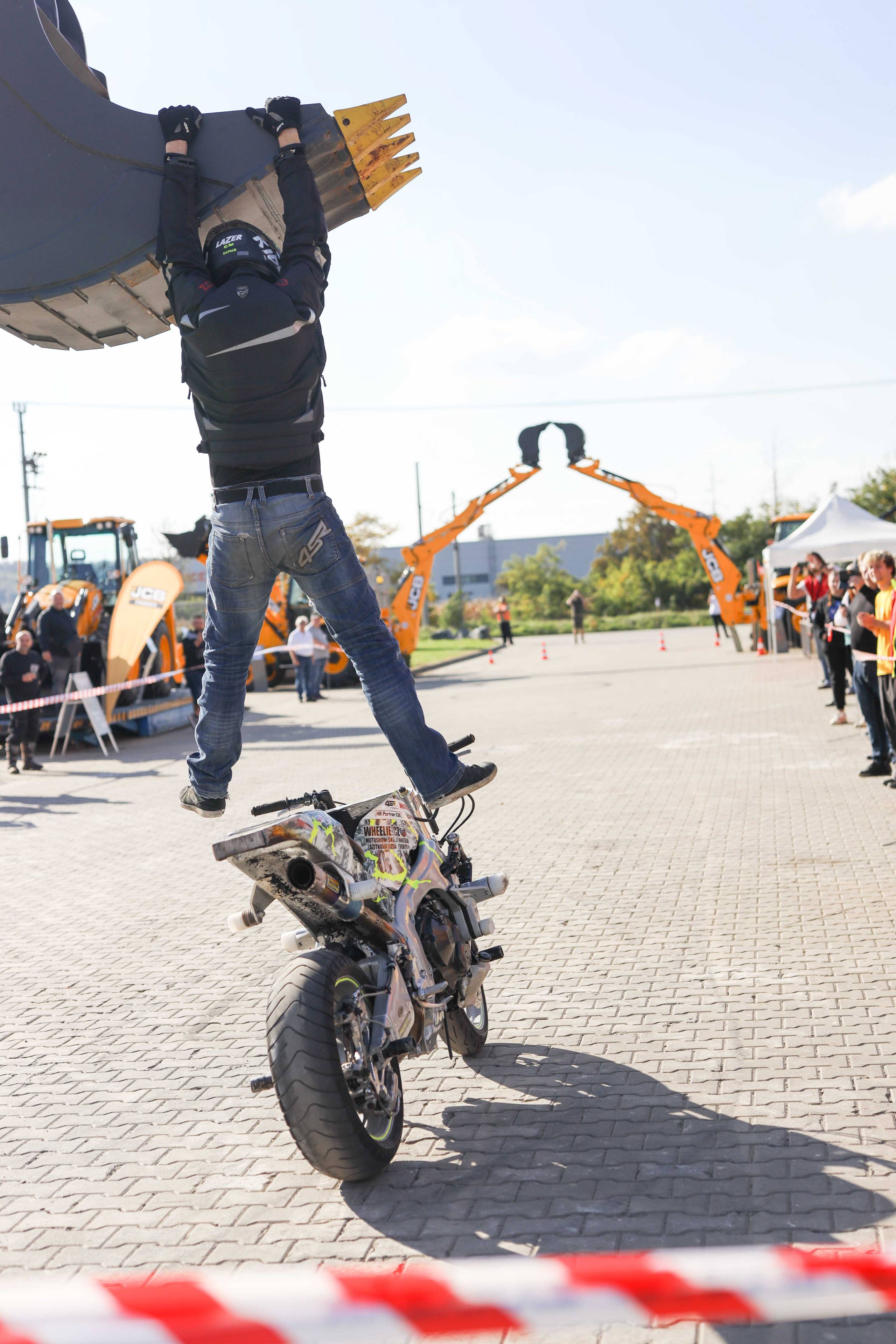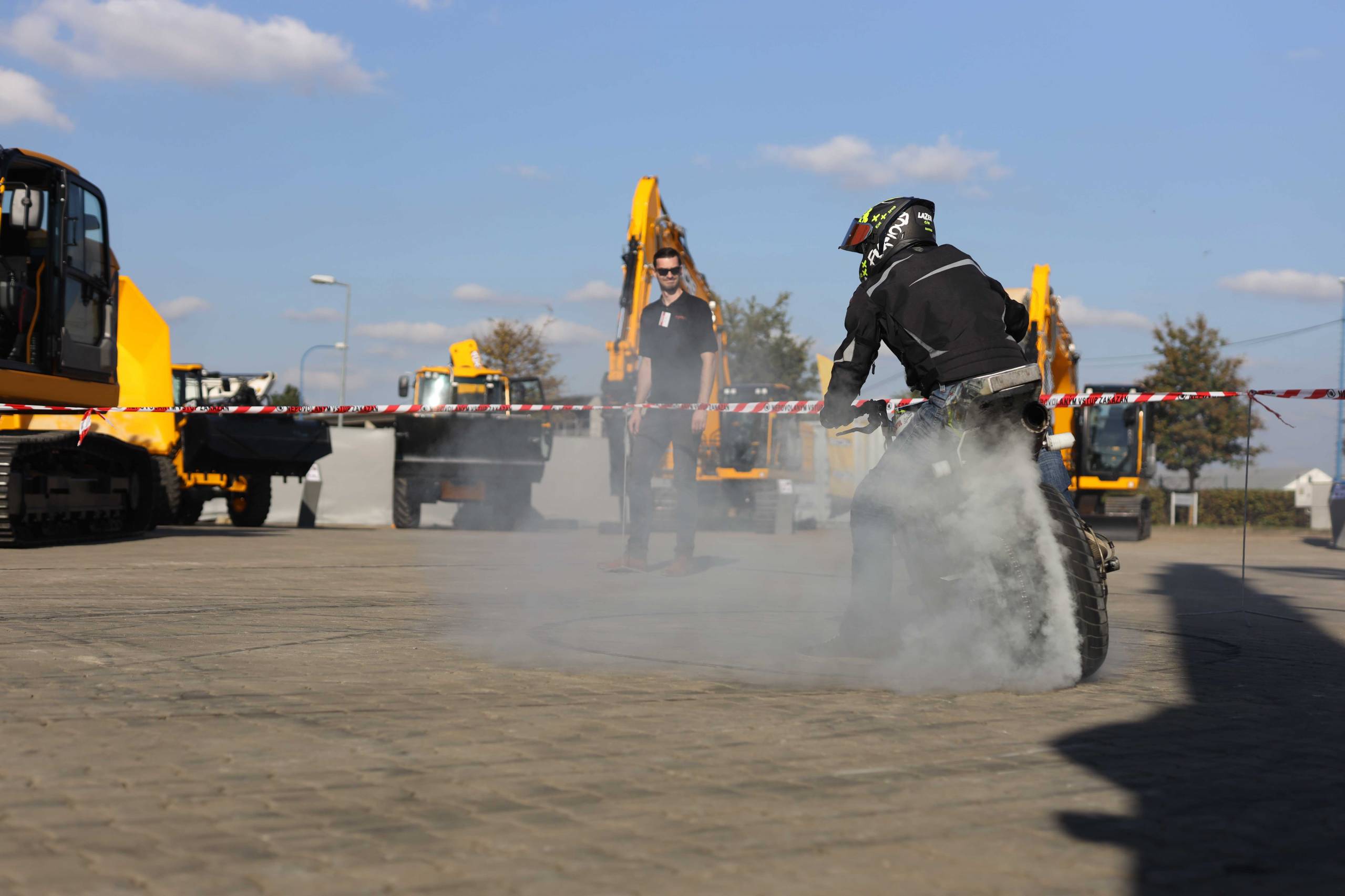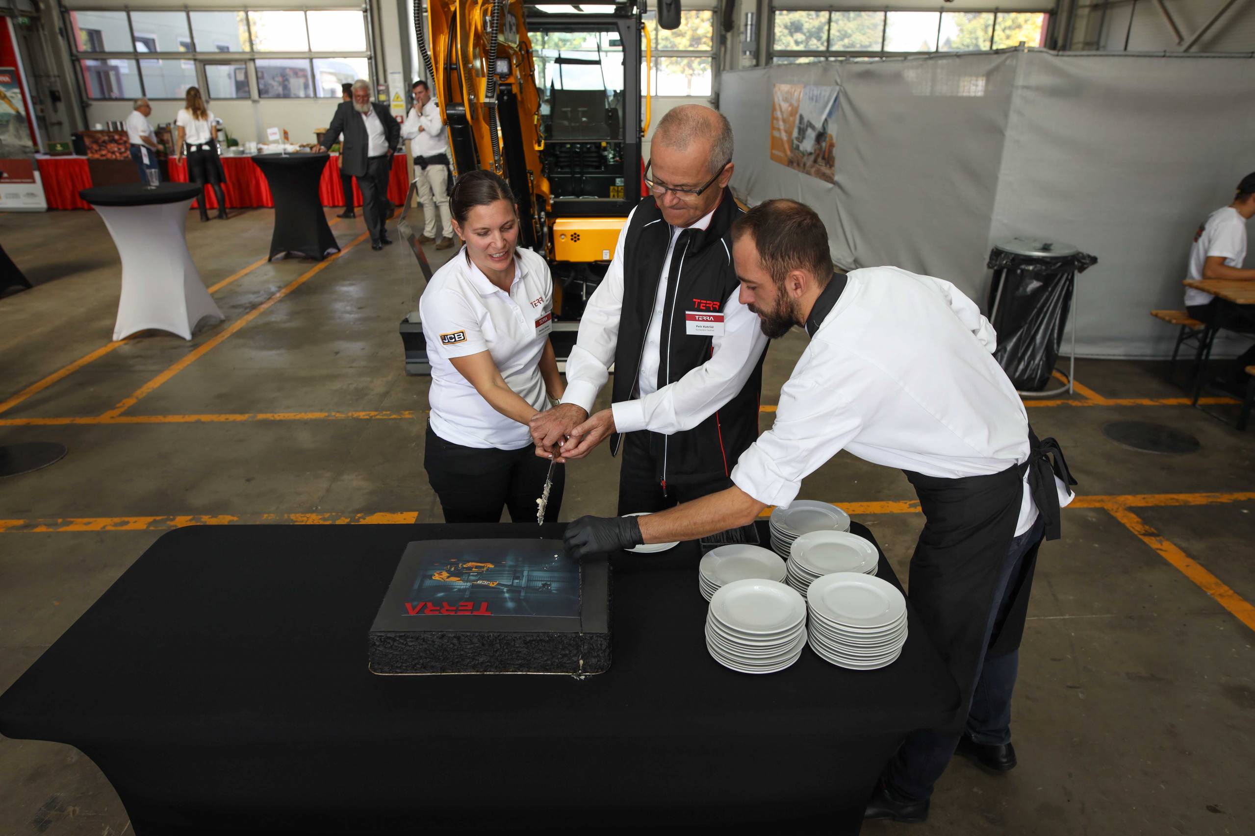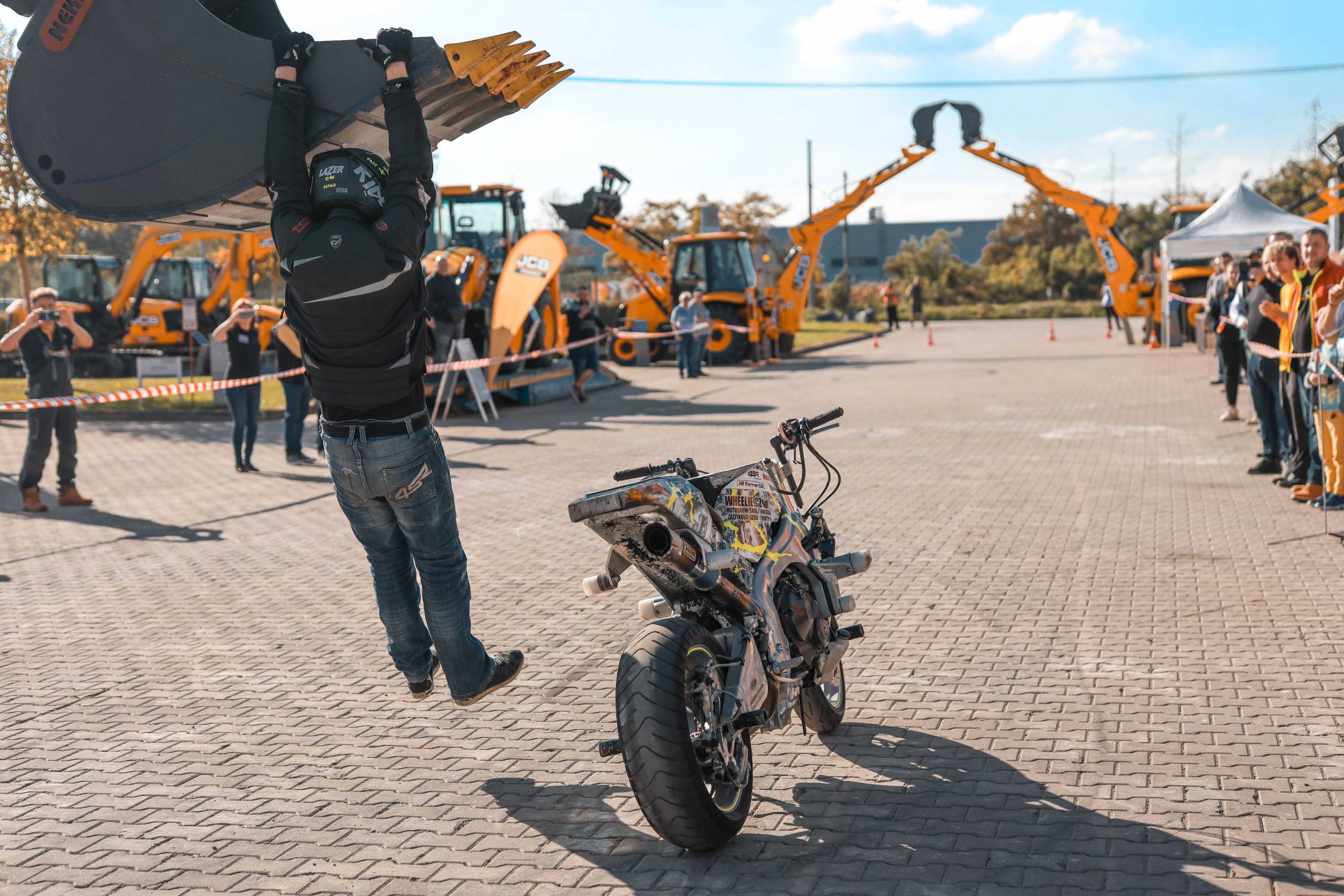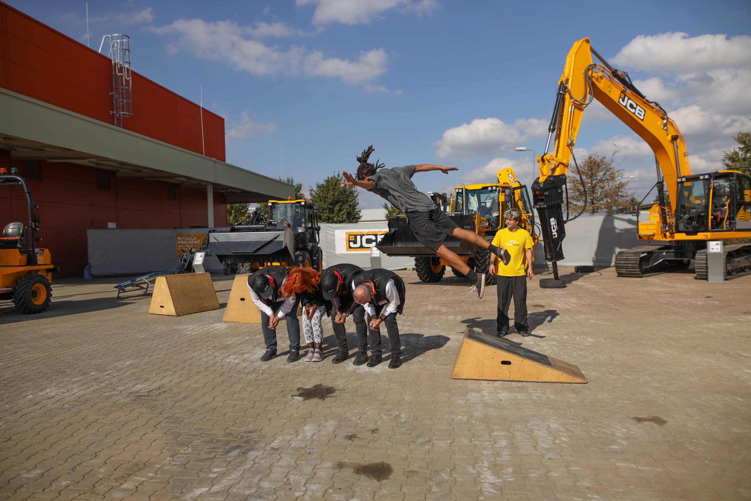Na odstavné ploše byly zastoupeny téměř všechny naše stroje od MINI/MIDI, přes trakorbagry až po 24 tunová pásová rýpadla. Dále byly představeny naše hlavní JCB novinky unikátní Hydradig Pothole Pro určený k opravě výtluků, pásové rýpadlo JCB 245XR se zkrácenou zádí, rotační teleskopický manipulátor JCB 555-210R doplněný o plošinu na které bylo možné užít si výhled na celý areál z výšky až 21 metrů.