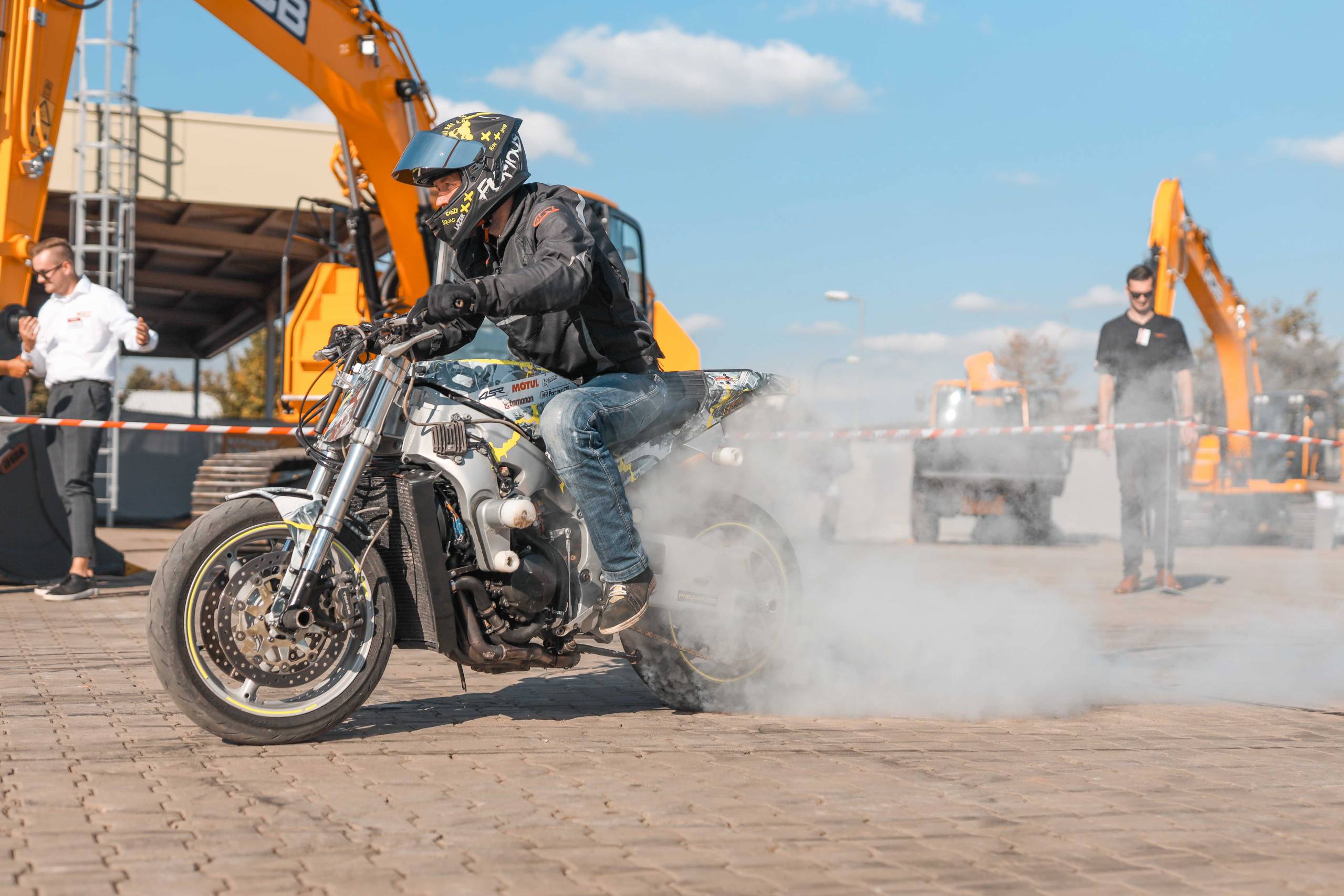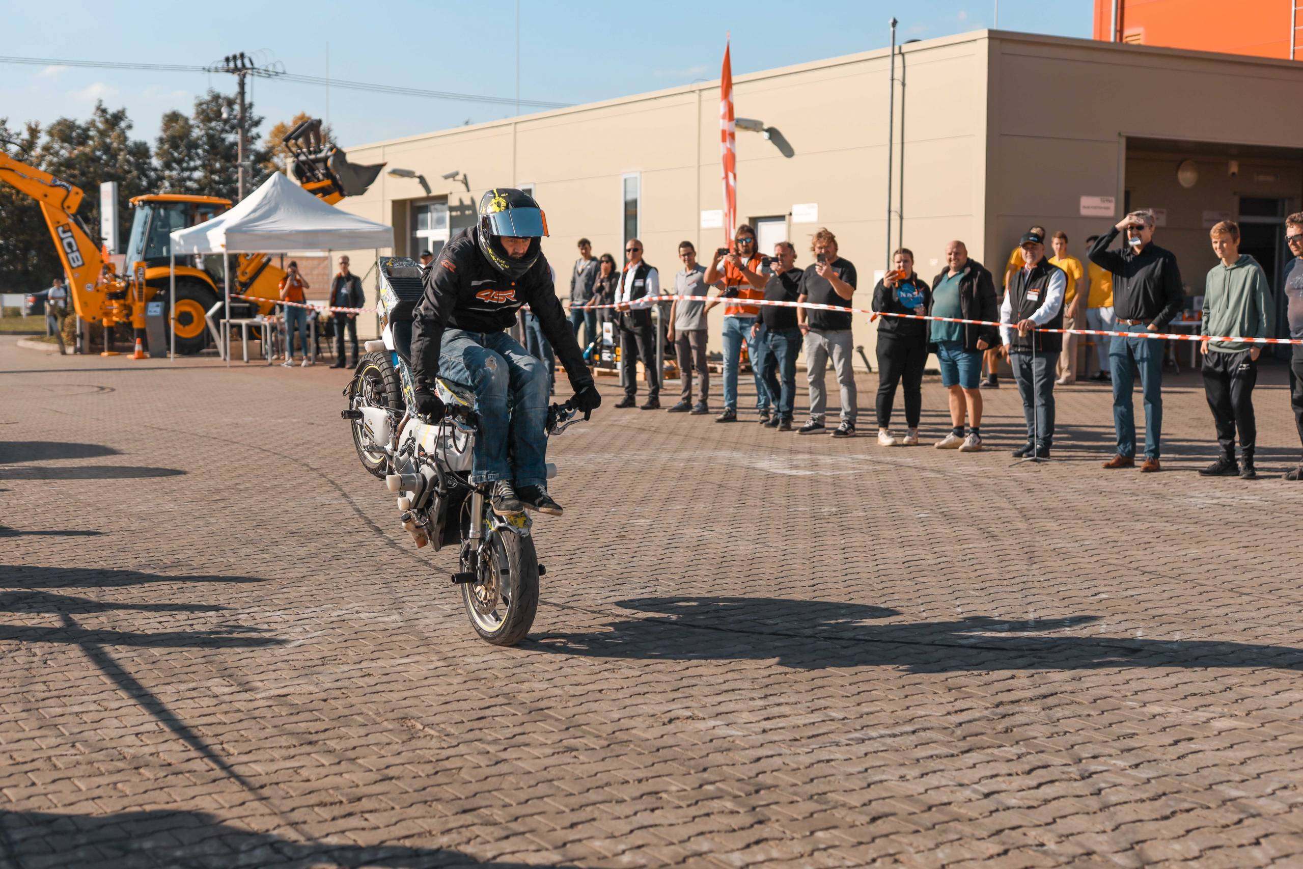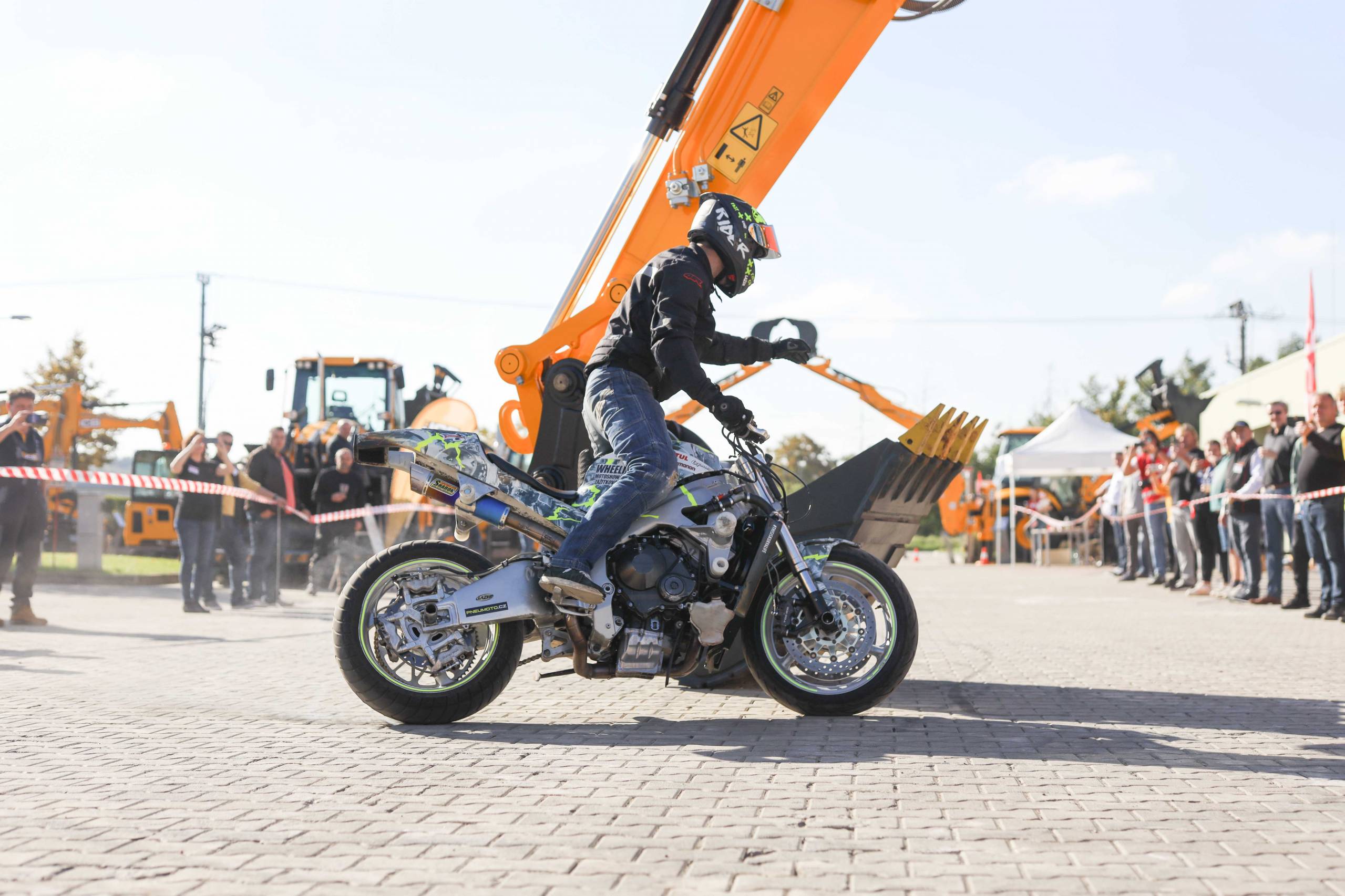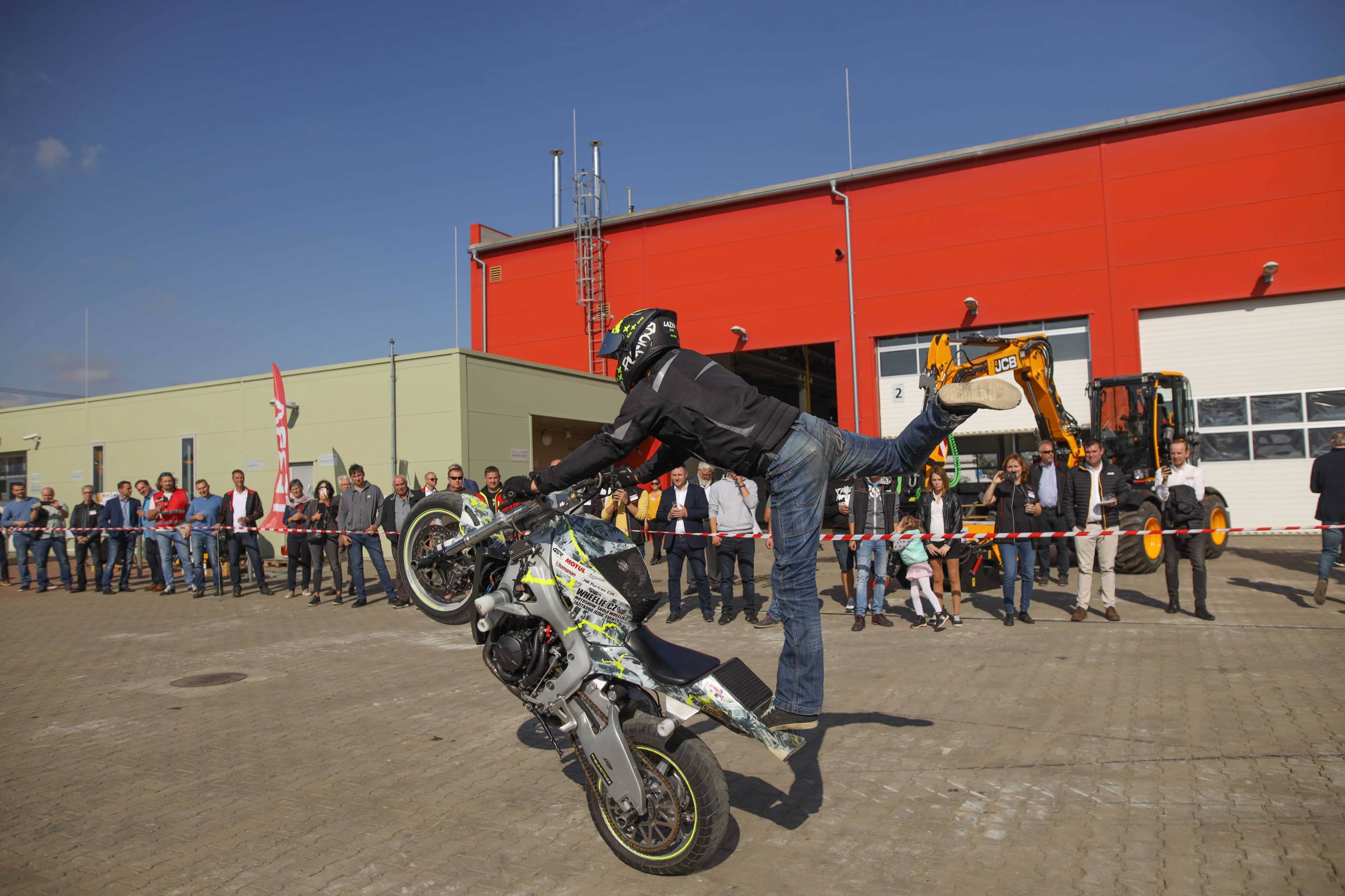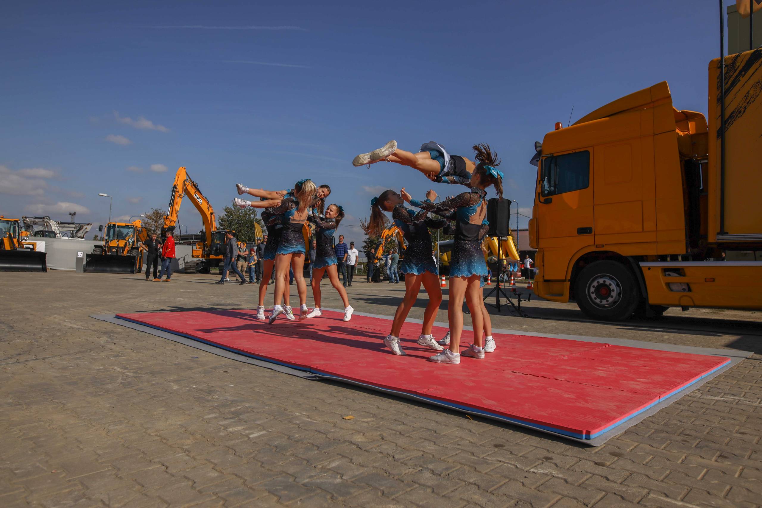 Na odstavné ploše byly zastoupeny téměř všechny naše stroje od MINI/MIDI, přes trakorbagry až po 24 tunová pásová rýpadla. Dále byly představeny naše hlavní JCB novinky unikátní Hydradig Pothole Pro určený k opravě výtluků, pásové rýpadlo JCB 245XR se zkrácenou zádí, rotační teleskopický manipulátor JCB 555-210R doplněný o plošinu na které bylo možné užít si výhled na celý areál z výšky až 21 metrů.