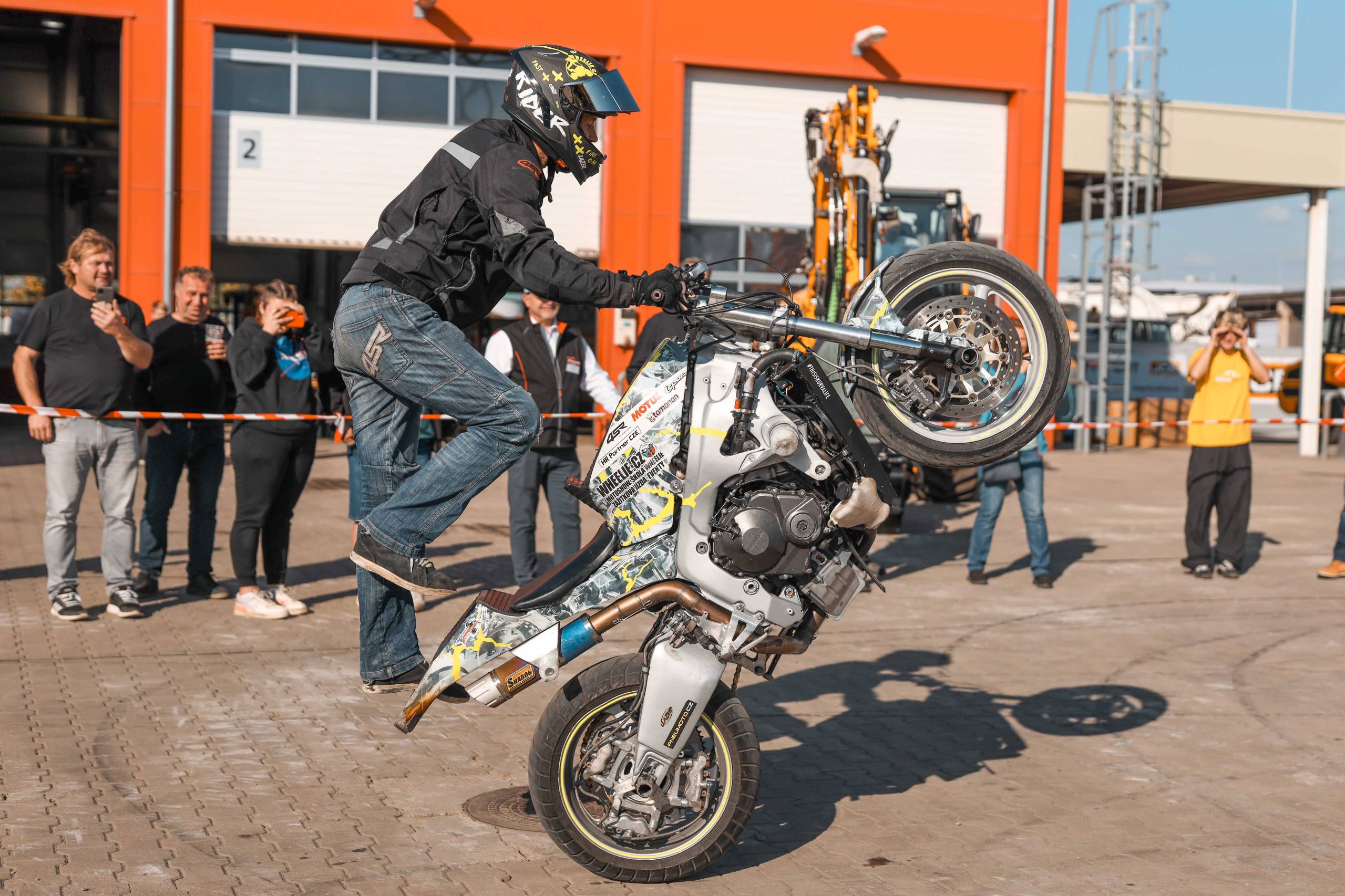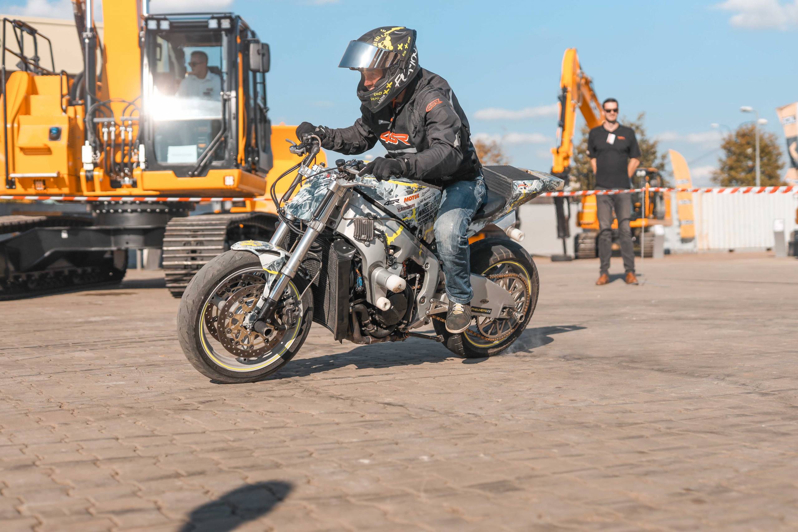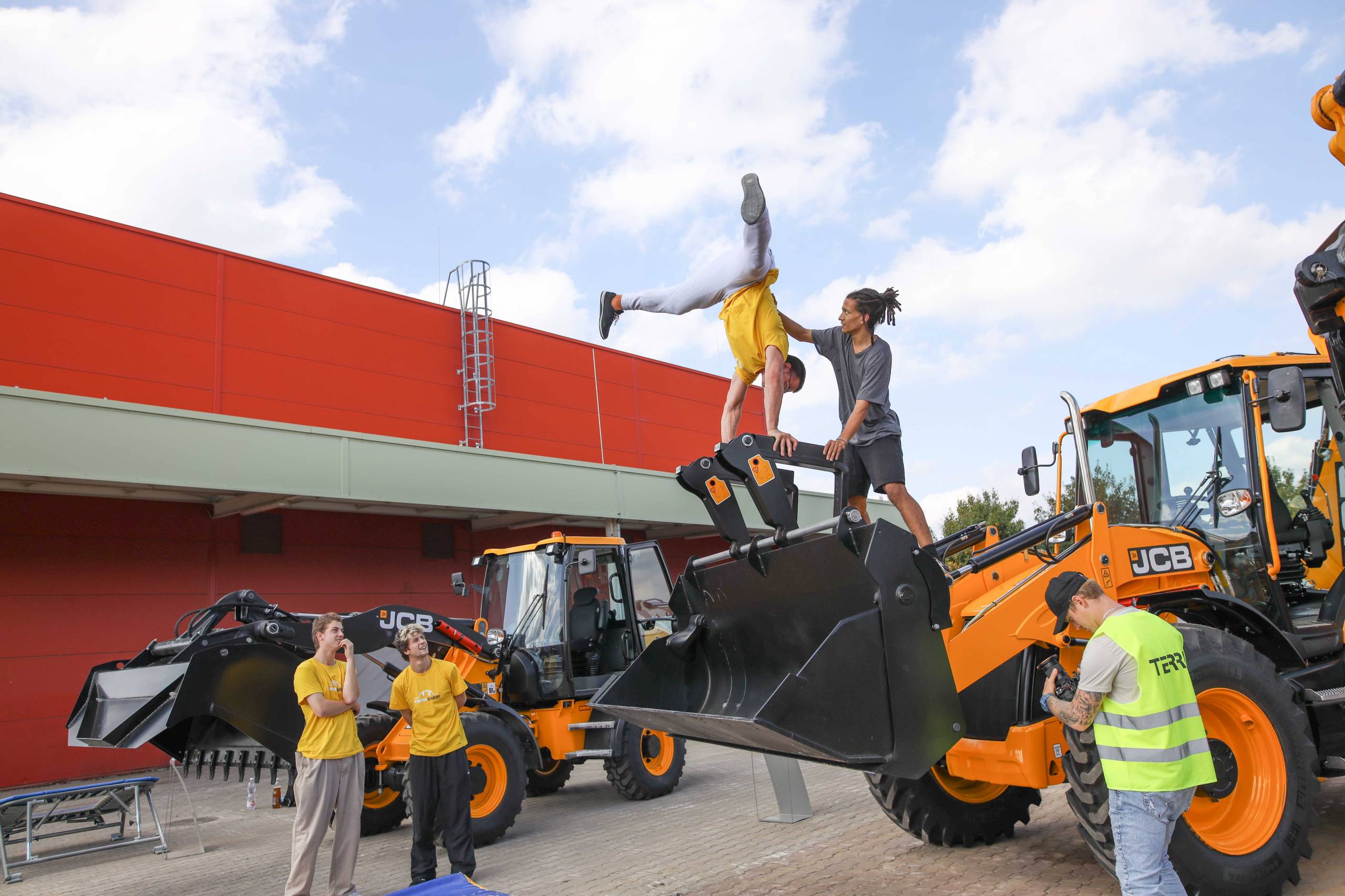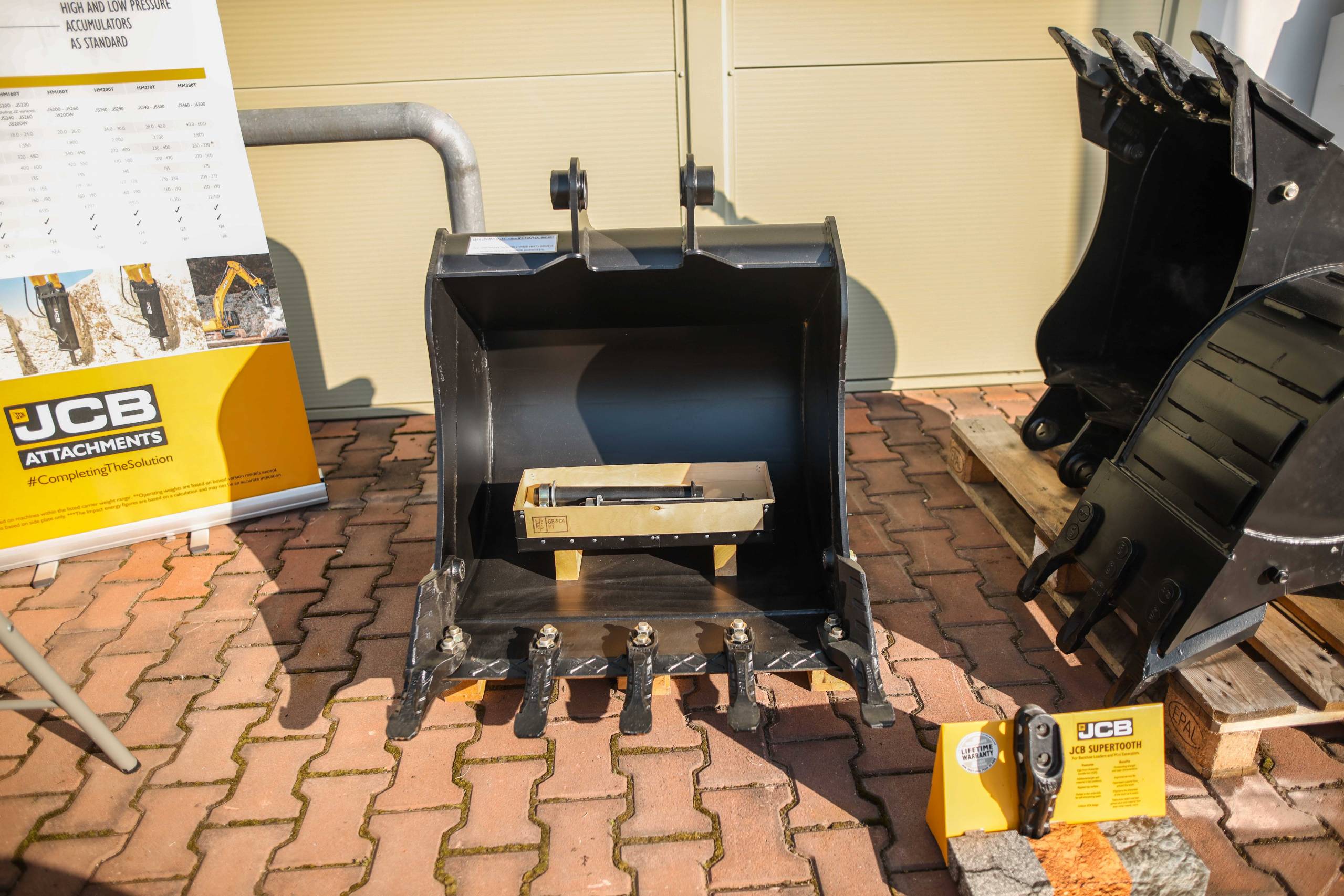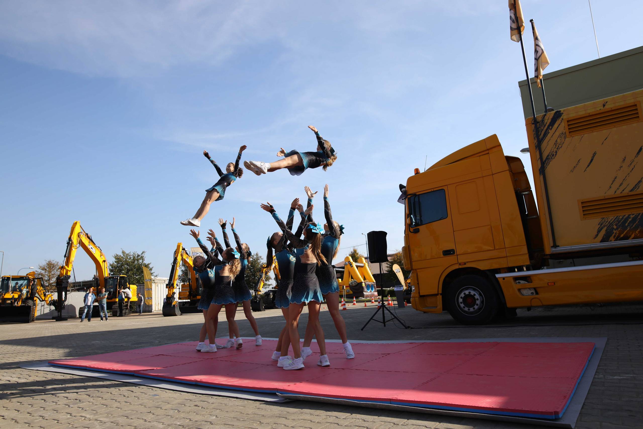 Na odstavné ploše byly zastoupeny téměř všechny naše stroje od MINI/MIDI, přes trakorbagry až po 24 tunová pásová rýpadla. Dále byly představeny naše hlavní JCB novinky unikátní Hydradig Pothole Pro určený k opravě výtluků, pásové rýpadlo JCB 245XR se zkrácenou zádí, rotační teleskopický manipulátor JCB 555-210R doplněný o plošinu na které bylo možné užít si výhled na celý areál z výšky až 21 metrů.
