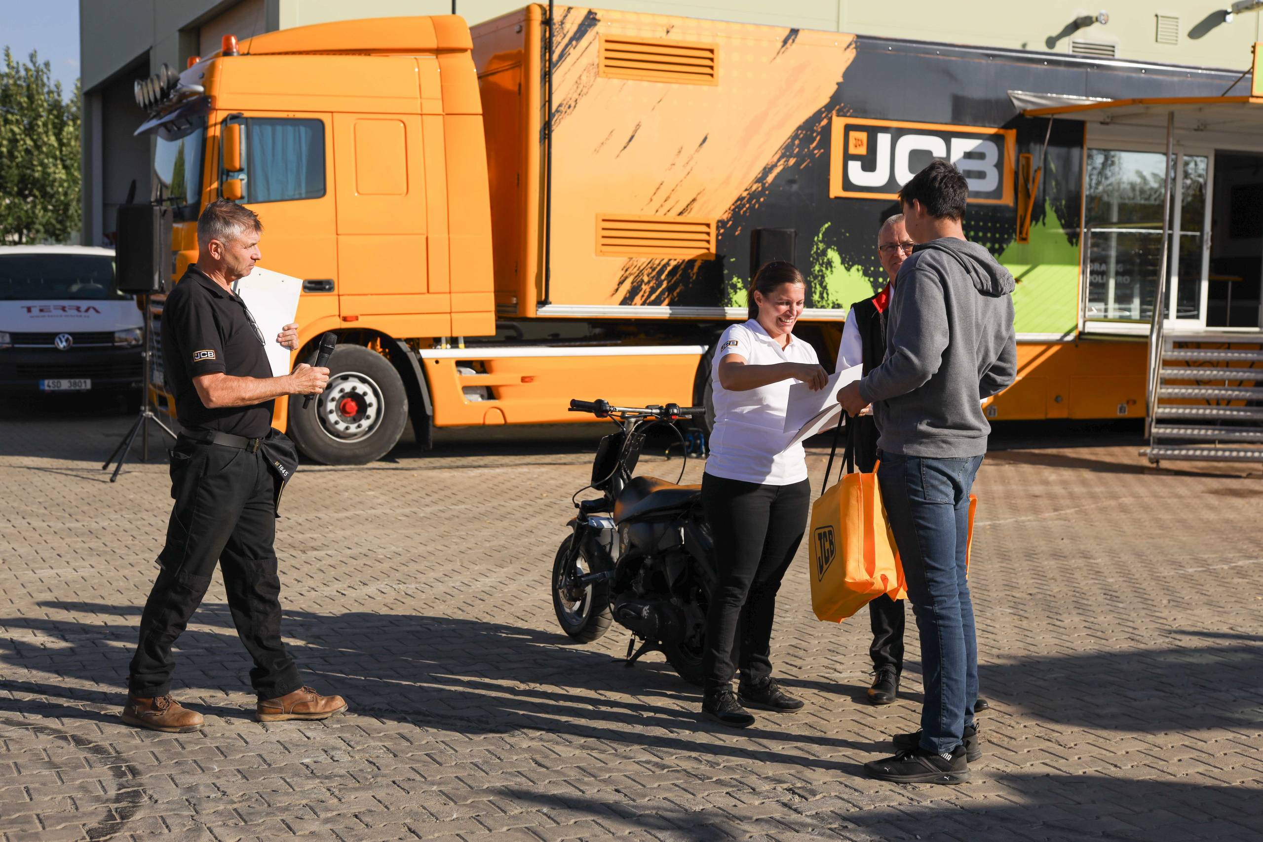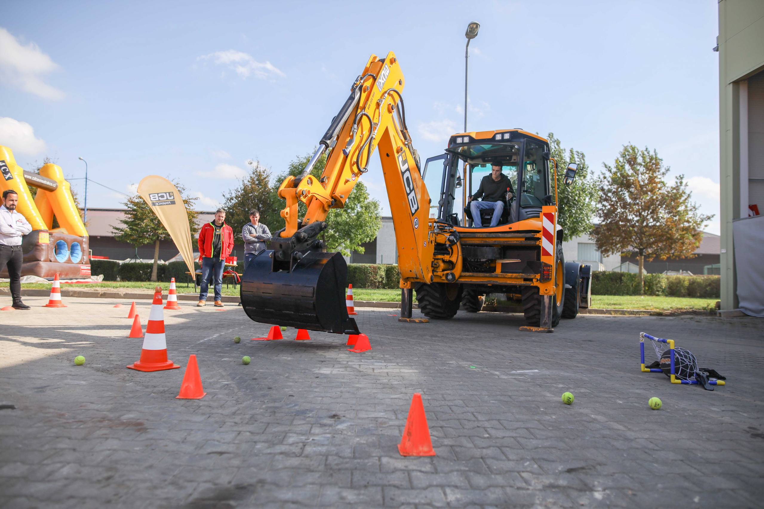 Dále byl k dispozici prostor pro aktivní bagrování, kde si každý mohl vyzkoušet stroje JCB 4CX, devítitunový dumper JCB 9T-2, Hydradig 110W, MIDI rýpadlo JCB 86C-2 a čelní kolový nakladač JCB 409 v akci.